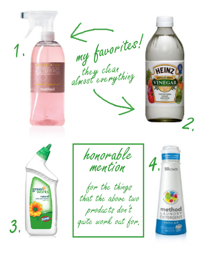 We have been using Mrs. Meyers All Purpose cleaner. You buy it in concentrate so it lasts a really long time. I’ve just been mixing it in my old Method bottles, so it’s really easy to mix. And it smells good to boot.