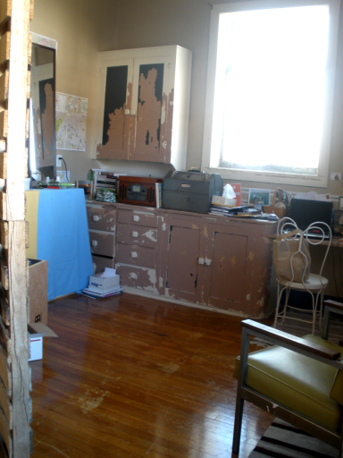 I pretty much swapped the positions of the green chair and the shelf. This makes the office seem much more “roomlike.” Also, several rugs have been added which adds to the eclectic nature of the space. Once I do a little more in here I’ll share more pictures.
