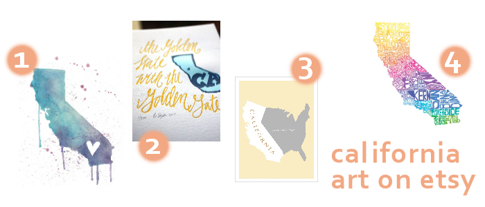 3. 11×14 Map of US featuring California by delovelyArts. “And some other states.” Kills me!