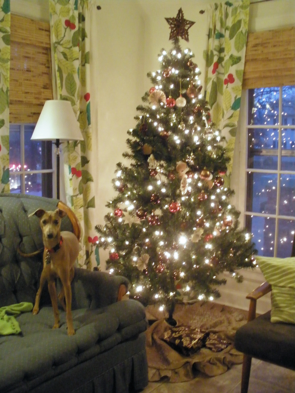 Double Trees. Not to be confused with DoubleTree hotels, which I am much too thrifty to stay at. This year I have two Christmas trees! You’ve seen the main one in our house in this adorable picture (featuring Mosey) but I want to show you more pictures and details!
