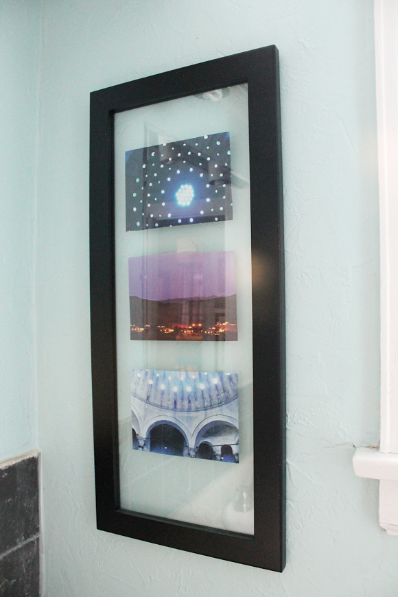 And I really like the art I have in the tall black frame (it’s from Target) so I thought I’d share it with you. They’re photos cut out from a semi-recent Conde Nast Traveler magazine, and all the photos are of spas in the Middle East. It reminded me of my hammam/Turkish bath experience in Morocco and felt appropriate for a bathroom.