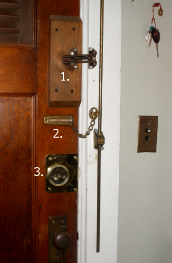 “Where are you going with this?” I hear you asking on the other side of the computer screen. I shall make my point. My door has an absurd number of locks. The only doors I’ve seen like this are a) on TV (or movies) and b) the aforementioned is set in a big city with actual crime.