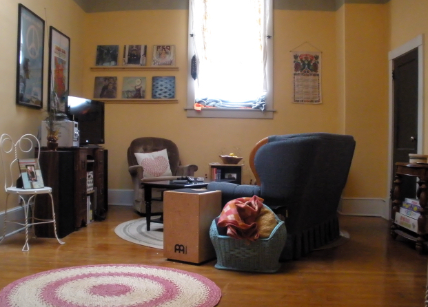 By now I think you all know what my living room is like (if not, check it out here). The room has been set up in the same way (more or less) since the week I moved in, 13 months ago. I have rearranged it a few times, been unhappy with the results, and put it back. This time I’m going to leave it for a few days to get to know the “feel.”