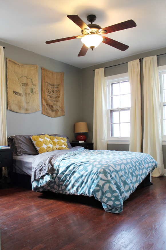 I like a rich wood bookshelf (this one from Land of Nod) with some concealed storage to wrangle books and toys and everything else that comes with being a kid. The dark wood looks a bit more mature, and will last longer, than white laminate particle board (which is common in kids’ rooms). For the paint, I chose a soft gray as a nod to the black and white beginning & end of the film. It will add dimension to the room while still being light enough to bounce around natural light. I also like to think that gray will camouflage scuffs and bumps on the wall which are inevitable. At least it’ll camouflage them a little bit. Plus, using a neutral color like this makes it easy peasy to change up the room for the next phase–a few years down the road, hopefully.
