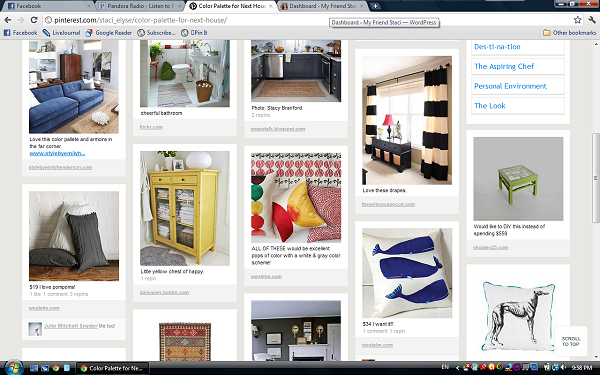 Below you can see some of my newer pins, in which yellow is clearly a recurring theme–my goal is for the next place we live in to have a cohesive color plan to be carried throughout the whole house/apartment. These two boards working together should give me a jumping-off place, and allow me to organize my thoughts on the subject before diving in, roller in hand.