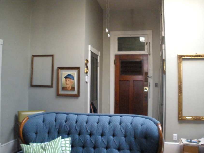 The gray-green is the color that the apartment came with, and this color is still present in the room. I swear it’s green, but in photos I’ve taken it reads gray. Go fig.