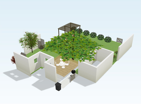 Here’s what I dreamed up for the backyard on floorplanner.com. Note that there are lots of “extras” I’d like to see if we in fact owned the house or were planning on living here for, say, 5+ years. For instance, the additional flagstone patio set farther back (ideally with a meandering flagstone path from one patio to the other) and large shrubs and a garden area. Since we don’t plan on ringing in 2017 in this house, they are just that: dreams. Sorry for the tiny text.