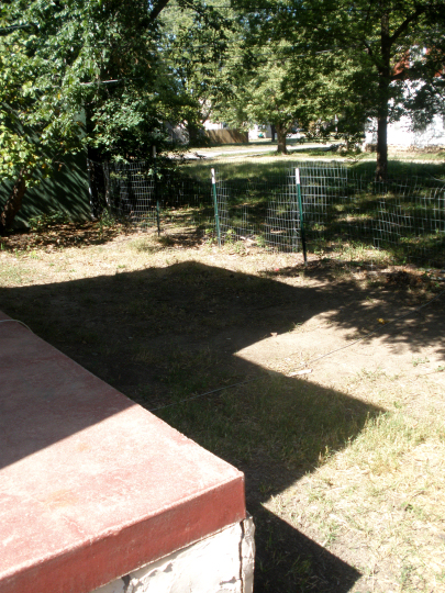 Here’s the back yard. It doesn’t look very exciting, does it? Well that’s because as of right now, it’s nothing special. Perhaps it’s even sub-special. But! The good news is that I don’t have to carry Mosey up 20+ stairs after he has to go out in the middle of the night. And that’s what counts. The yard is more or less fenced, and we have some supplies to expand the fenced in area so Mosey has more room.