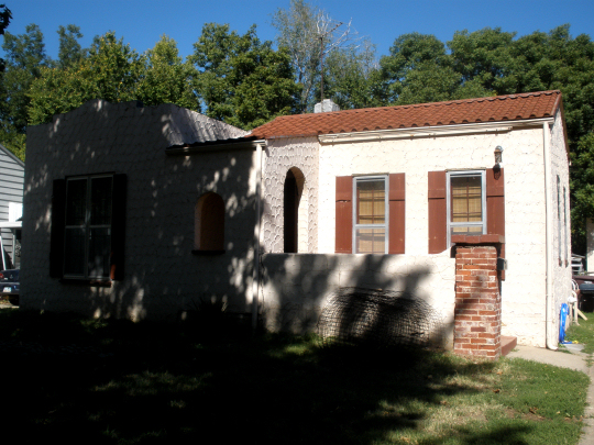 Sorry about the intense shadow, I took these pictures and am composing this post on my lunch break. And this is what the shadows to at 12:30. Here’s the front. The yard has some green-ness to it, which is saying something considering the hot, dry, oppressive summer we had to deal with. The stucco, tile roof and overall south-west style is absolutely great. It’s like my own little slice of home here in Kansas. We’ll work on grass this fall and see what we come up with in the spring.